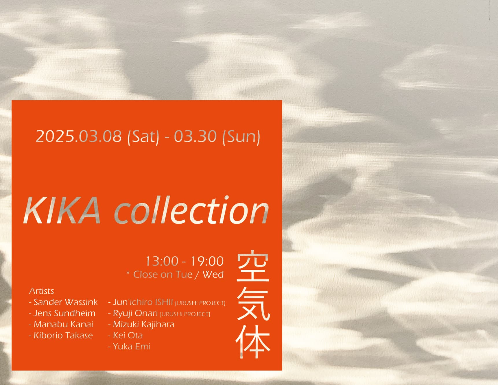 KIKA contemporary art space (KIKA cas) is pleased to present KIKA collection - Kūkitai (vaporous), the first group exhibition at our new location in Kamigyo Ward.