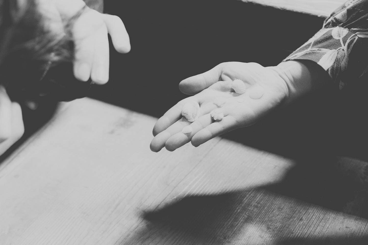 はるか彼方の海から打ち寄せられた貝殻を、地球からの「ギフト(贈り物)」として捉えるミックリーは、この「ギフト」を展覧会場を訪れる観客に無償で贈ります。かつて生命を守る宿であった貝殻は、夢想のシンボルであり、また同時に「願い」の比喩でもあります。